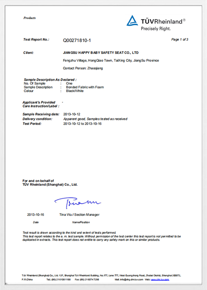 Pueri in campo salutis iter faciunt, signorum evolutio profundiorem cognitionem scientiarum vitae humanarum repraesentat. JIANGSU LAETIFICUS PARVULUS SALUS SEDES CO., LTD. firmiter credit puerum tutelae subsellia non mere signa vel certificationem esse constitutam, sed responsabilitatem et obligationem. Ut fidelis familias in toto orbe custos, intellegimus cuiuslibet sellae nativitatem familiae cognitionem esse ac vitae reverentiam.